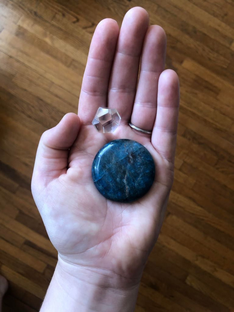 - The Blue apatite and a Quartz dodecahedron that Laura pulled