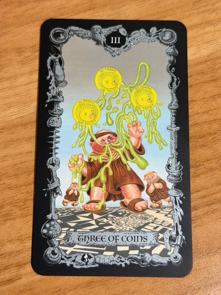 - That pesky 3 of coins card from Jennifer’s Garbage Pail Kids tarot deck.